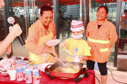 5月28日上午,南寧經(jīng)濟(jì)開發(fā)區(qū)開展“關(guān)愛農(nóng)民工 綠港小廚神”主題親子活動。轄區(qū)內(nèi)的園林綠化工人、水電維修物業(yè)工人、保潔人員等300多名進(jìn)城務(wù)工人員及其子女參加了本次活動。