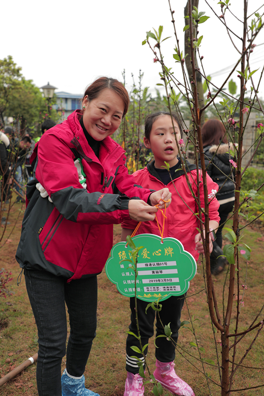當天,綠港集團還舉行了植樹護綠活動。在細雨紛飛中,家長和孩子們一起動手,分工協(xié)作。大家栽得認真,干得賣力,揮鍬鏟土、挖坑、栽樹、蓋土、澆水,各個環(huán)節(jié)銜接有序,配合默契。整個植樹活動現(xiàn)場熱火朝天,歡聲笑語不絕于耳。經(jīng)過一個多小時的揮汗奮戰(zhàn),上百棵小樹苗整齊的“站”在了綠港·國際中心桃樹林中。放眼望去,樹苗迎風挺立、搖曳生姿,大家看著這一片自己親手種下的樹苗,無不露出幸福的笑容,紛紛與小樹苗合影。綠港集團下屬榮鑫公司副總經(jīng)理唐欽月表示:“植樹造林是一項利于當代、造福子孫的偉大工程。綠港集團成立五年來,每年都積極組織員工開展義務植樹造林活動。今天我們帶上孩子一起參加義務植樹活動,不僅增強了職工們生態(tài)環(huán)境保護的責任感,也給孩子們樹立了關心、愛護以及主動參與家園建設的意識和榜樣?!?nbsp;