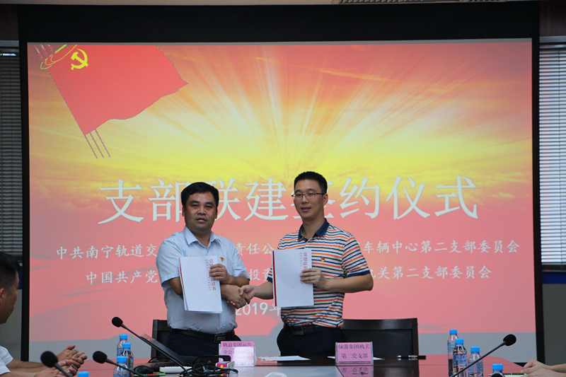 最后,南寧軌道交通集團(tuán)有限公司運(yùn)營(yíng)分公司車輛中心第二黨支部與綠港集團(tuán)機(jī)關(guān)二支部進(jìn)行黨建聯(lián)盟簽約儀式,并授予了“南寧地鐵黨建聯(lián)盟”牌匾。通過黨組織的結(jié)對(duì)共建,結(jié)對(duì)雙方將努力實(shí)現(xiàn)“資源共享、優(yōu)勢(shì)互補(bǔ)、互利共贏”的目標(biāo),充分發(fā)揮同盟的綜合效應(yīng),豐富基層黨建內(nèi)涵,促進(jìn)支部黨建工作水平再上新臺(tái)階。