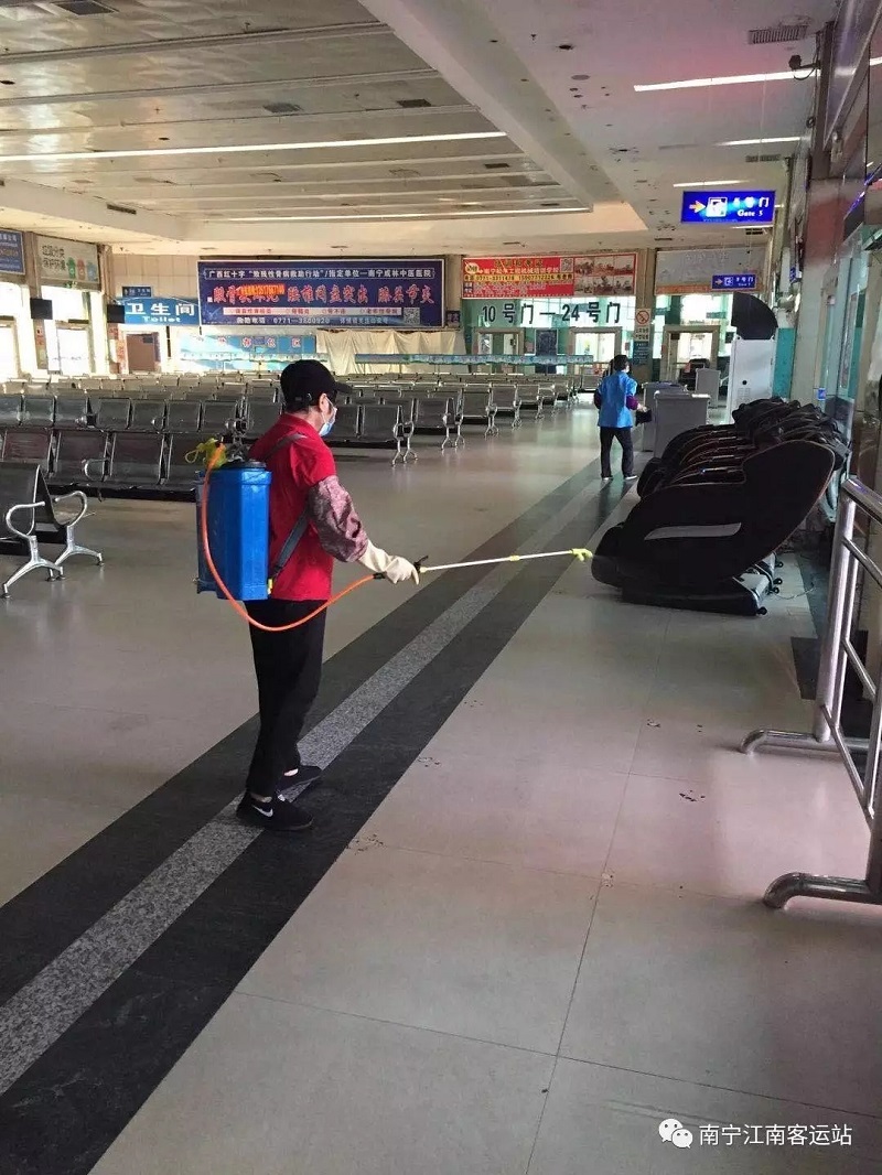 ▲江南客運站對站內(nèi)座椅等相關(guān)設(shè)施進行消殺。 (江南客運站供圖)
