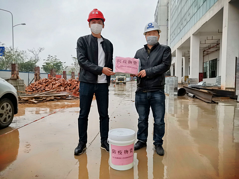 榮鑫公司副總經(jīng)理黎杰代表公司到項(xiàng)目現(xiàn)場(chǎng)送上防疫物資