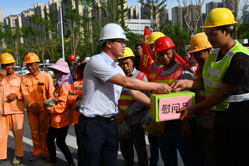 慰問凝聚真情和力量,眾志成城保復工復產(chǎn)。本場的“送清涼”活動拉開了集團黨委和工會2020年夏季重點項目“一線送清涼”活動的序幕,下一步,綠港集團將廣泛開展形式多樣、內(nèi)容豐富的送清涼活動,爭取為更多的項目特別是重點項目送去夏日的清涼和組織的關(guān)愛,幫助一線奮斗者清涼、安全度夏,助力項目建設(shè)安全有序進行。(榮鑫公司 蔣紹明/圖、文 林武東/圖)