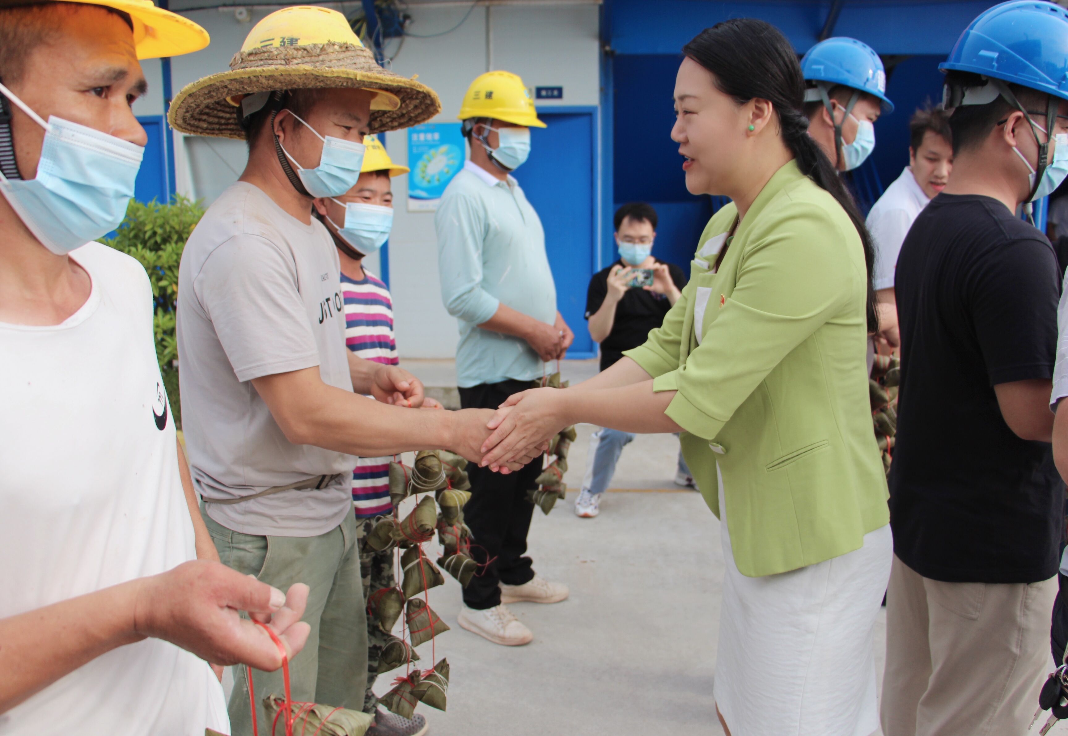 關(guān)心關(guān)懷進(jìn)工地,濃濃粽情暖人心。座談會(huì)后,此次聯(lián)建的各黨支部相關(guān)領(lǐng)導(dǎo)共同慰問了項(xiàng)目一線工人,為他們送去粽子等慰問品和最真摯的節(jié)日問候,感謝一線工人的辛勤勞動(dòng)、敬業(yè)付出以及為綠港?金陽(yáng)產(chǎn)業(yè)城等南寧市重點(diǎn)項(xiàng)目建設(shè)做出的貢獻(xiàn)。慰問中,綠港集團(tuán)黨委委員、副總經(jīng)理黃麗琴關(guān)切地詢問現(xiàn)場(chǎng)工人勞動(dòng)安全保障情況和防疫情況,叮囑大家要注意勞動(dòng)安全,防疫安全,堅(jiān)持安全與生產(chǎn)兩手抓兩不誤,希望大家繼續(xù)保持昂揚(yáng)的斗志,以高度的責(zé)任感和飽滿的工作熱情投身到項(xiàng)目建設(shè)中,為經(jīng)開區(qū)社會(huì)經(jīng)濟(jì)高質(zhì)量發(fā)展作出貢獻(xiàn)。